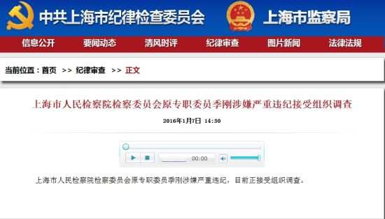 上海检察院原委员季刚被查 现任复星集团纪委书记
