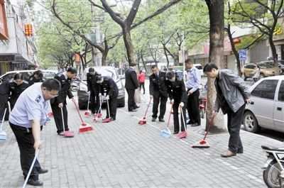 河南信阳执法人员上街大扫除 10多人扫一小块(图)