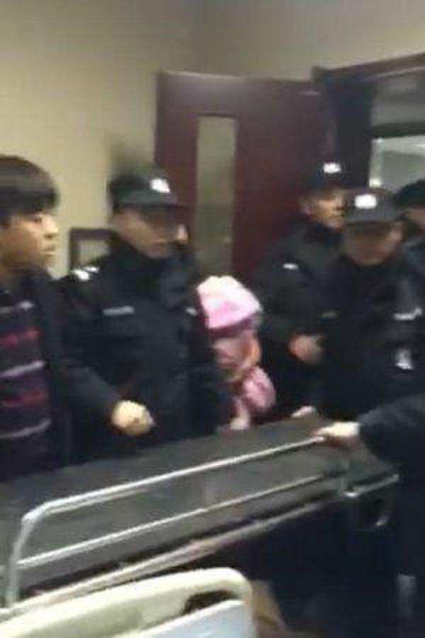 视频开头,两位大人哭着为躺在病床上的幼儿穿衣服,病房大门内有多名家属堵着大门。此时,大门外多名身穿“特勤”制服的工作人员,面对阻拦冲进病房,冲突导致门框上方一块木板掉落。视频显示,特勤人员抬着一个担架进了病房,双方发生了肢体与言语冲突。
