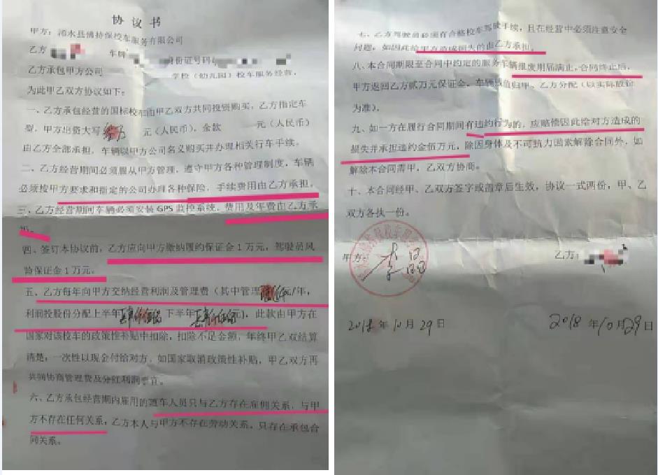 佛持保公司要求司机与他们签订《协议书》,规定入股的年限是15年,而佛持保公司中标的年限是5年,为什么要从司机手里多分红10年?后面10年中标的校车公司怎么办?还有其他很多单方面拟订的不合理条款。
